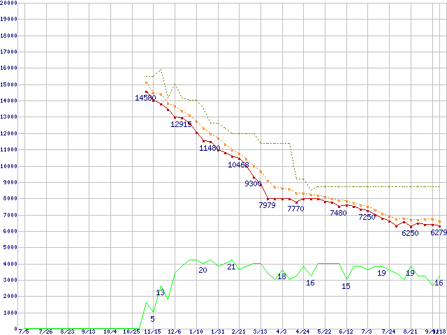 | HDP725050GLA360 (500GB,16MB)の価格推移 | | | (2007年7月5日~2008年9月18日) |