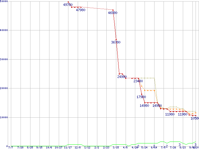 PC3-10600(DDR3-1333) DDR3 SDRAM DIMMの最安値推移