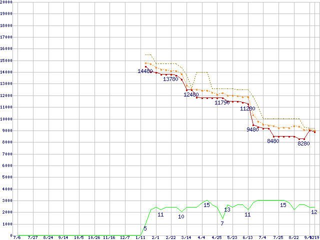 | Athlon X2 5400 (2.8GHz,L2 512KB×2)の価格推移 | | | (2007年7月6日~2008年9月19日) |