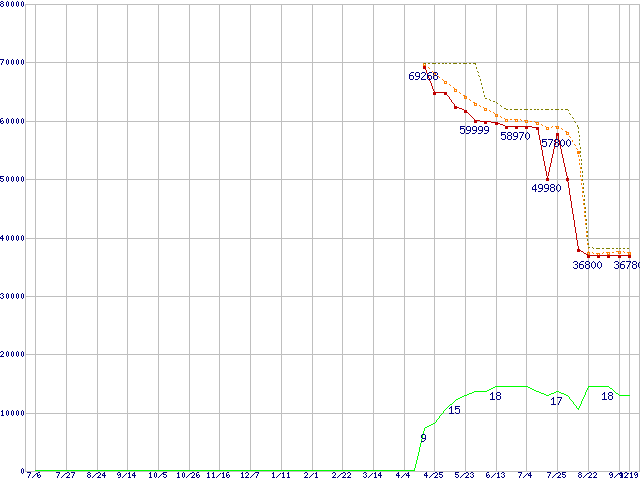 | Core 2 Quad Q9550 (2.83GHz,L2 6MB×2)の価格推移 | | | (2007年7月6日~2008年9月19日) |