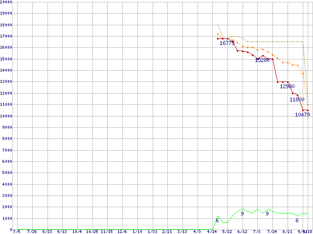 | HD103UI (1TB,32MB)の価格推移 | | | (2007年7月5日~2008年9月18日) |