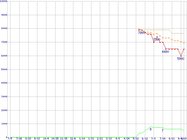 | HD502IJ (500GB,16MB)の価格推移 | | | (2007年7月5日~2008年9月18日) |