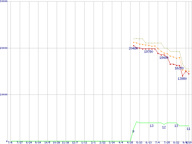| Phenom X3 8750 (2.4GHz,L2 512KB×3,L3 2MB)の価格推移 | | | (2007年7月6日~2008年9月19日) |