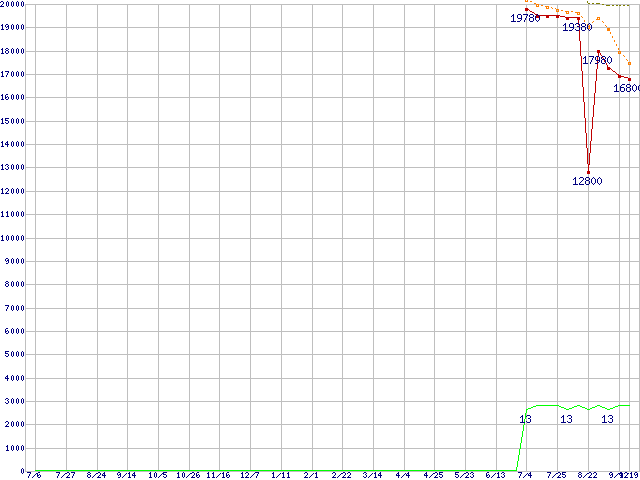 | Phenom X4 9150e (1.8GHz,L2 512KB×4,L3 2MB)の価格推移 | | | (2007年7月6日~2008年9月19日) |