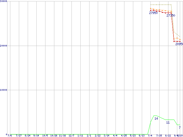 | Phenom X4 9950 Black Edition (2.6GHz,L2 512KB×4,L3 2MB)の価格推移 | | | (2007年7月6日~2008年9月19日) |