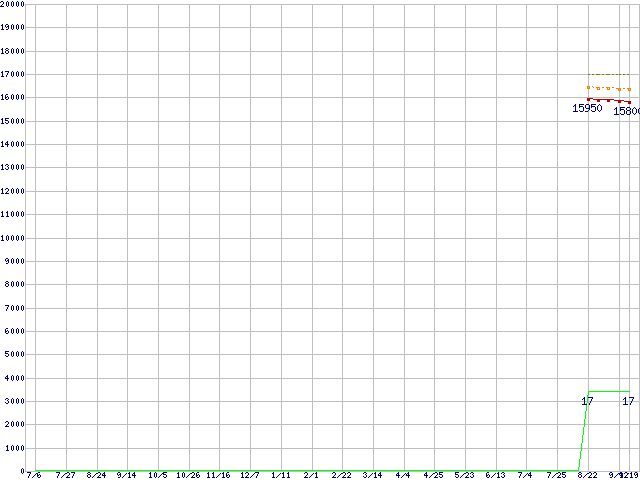 | Core 2 Duo E7300 (2.66GHz,L2 3MB)の価格推移 | | | (2007年7月6日~2008年9月19日) |