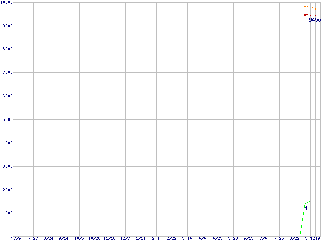 | Pentium Dual-Core E5200 (2.5GHz,L2 2MB)の価格推移 | | | (2007年7月6日~2008年9月19日) |