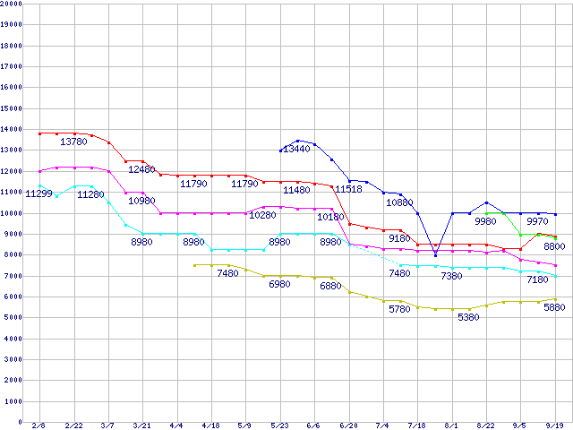 Socket AM2 (HyperTransport,Dual Core)の最安値推移