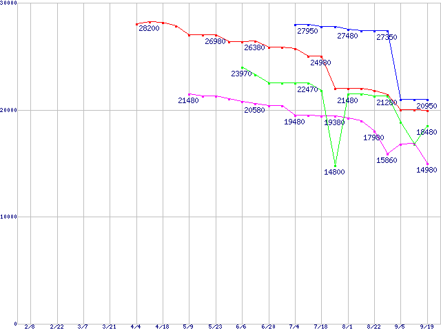 Socket AM2 (HyperTransport 3.0,Quad Core)の最安値推移