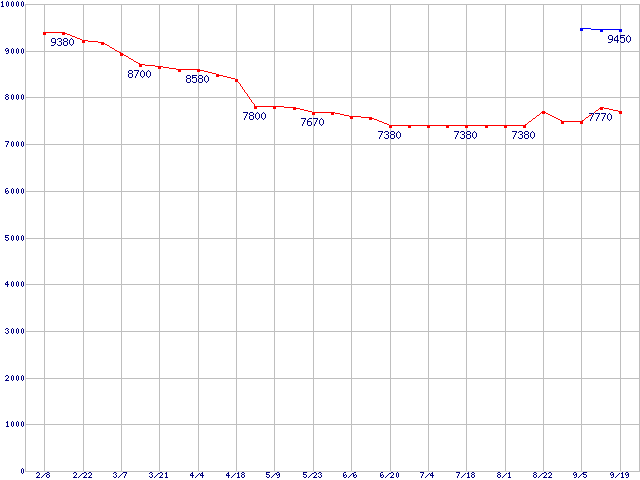 Socket AM2 (HyperTransport 3.0,Quad Core)の最安値推移