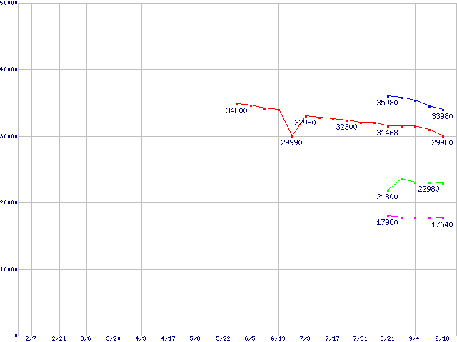 WD VelociRaptor (10000rpm,3Gb/s,16MB)の最安値推移