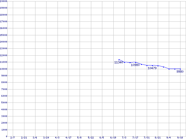 WD Scorpio Blue (5400rpm,3Gb/s,2.5インチ)の最安値推移