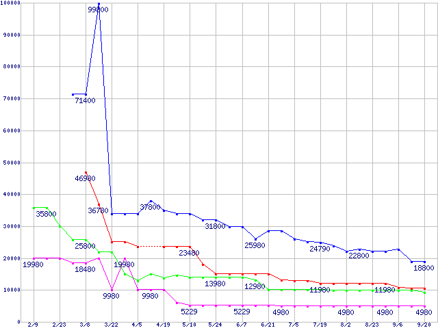 メモリ主要製品の最安値推移