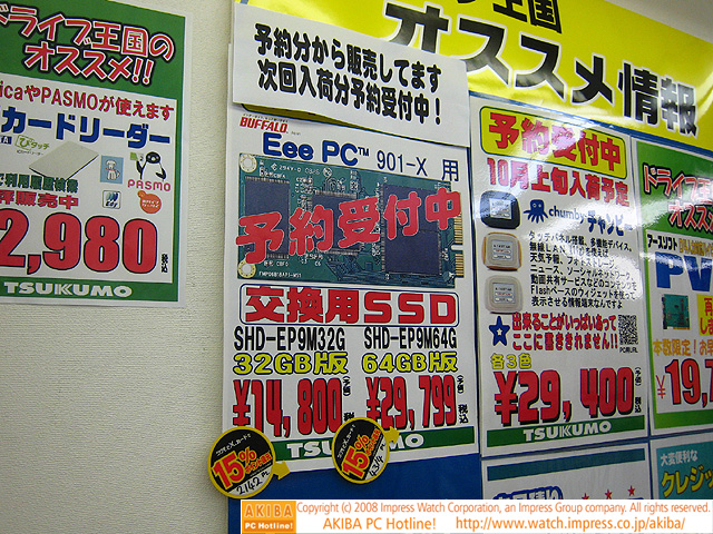 Eee PC用の大容量SSDが発売、32GBと64GBで売り切れ寸前