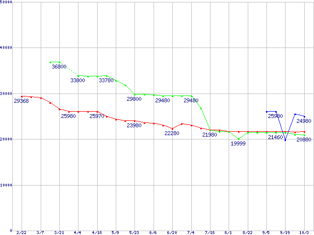 CPU主要製品(最安値2万円~3万円未満)の最安値推移