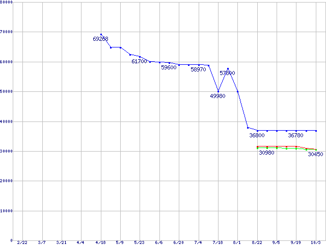 CPU主要製品(最安値3万円~6万円未満)の最安値推移