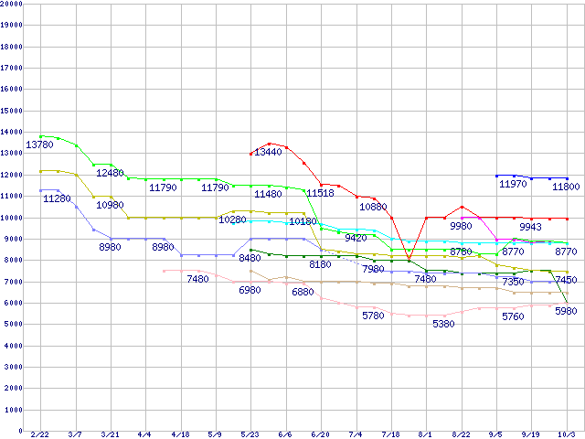 ※製品名をクリックすると個別のグラフを表示します ※点線部は販売店が確認できなかった、または調査データがないことを示します |