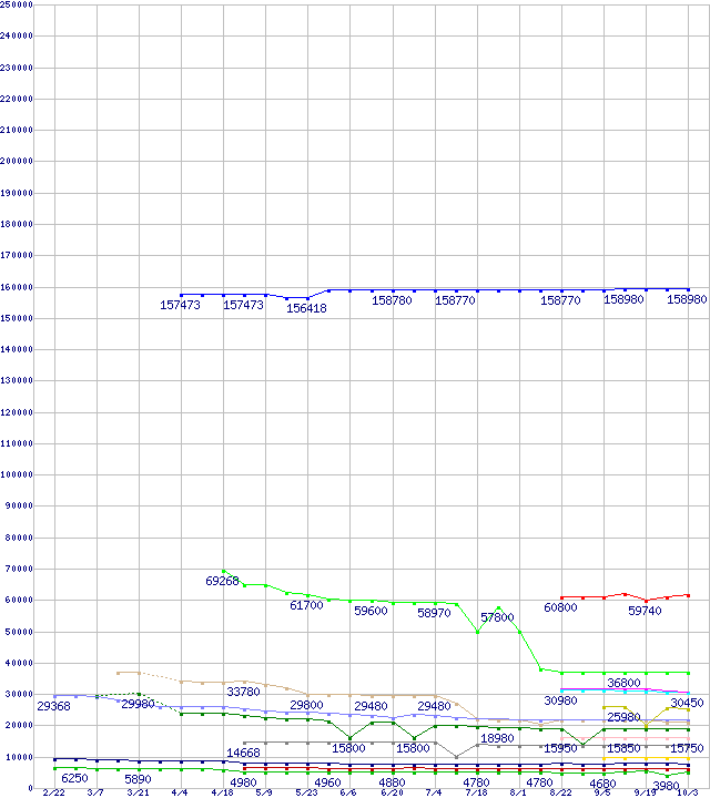 | Intel系CPUの最安値推移 | | | (2008年2月22日~2008年10月3日) |
