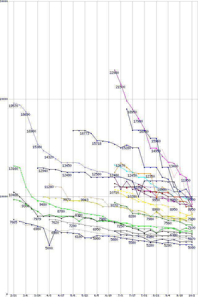 ※製品名をクリックすると個別のグラフを表示します ※点線部は販売店が確認できなかった、または調査データがないことを示します |