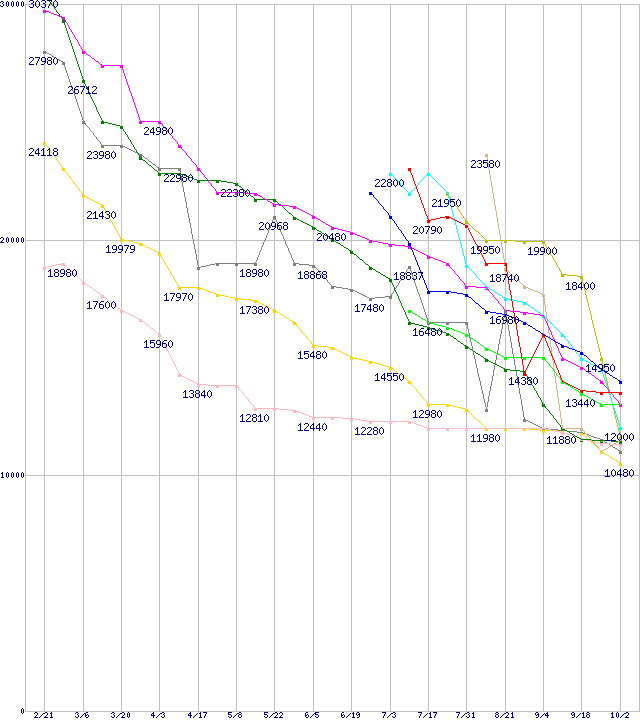 ※製品名をクリックすると個別のグラフを表示します ※点線部は販売店が確認できなかった、または調査データがないことを示します |