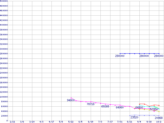 HDD 160~200GB未満の最安値推移