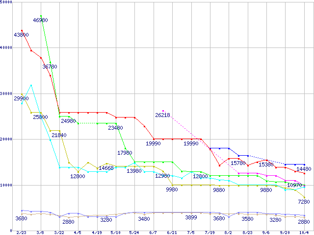 1GBモジュールの最安値推移