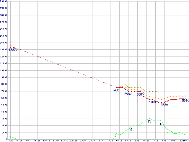| Athlon X2 4600 (2.4GHz,L2 512KB×2)の価格推移 | | | (2007年7月20日~2008年10月3日) |