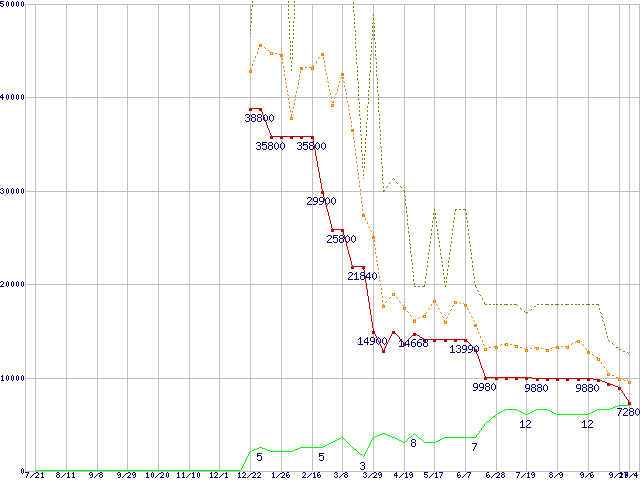 PC3-10600(DDR3-1333) DDR3 SDRAM DIMMの最安値推移