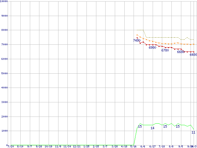 | Athlon X2 4050e (2.1GHz,L2 512KB×2)の価格推移 | | | (2007年7月20日~2008年10月3日) |
