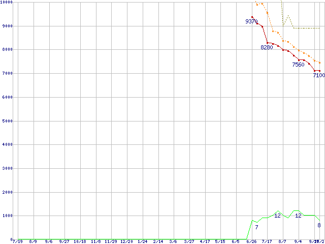 | HTS543225L9A300 (250GB,8MB)の価格推移 | | | (2007年7月19日~2008年10月2日) |