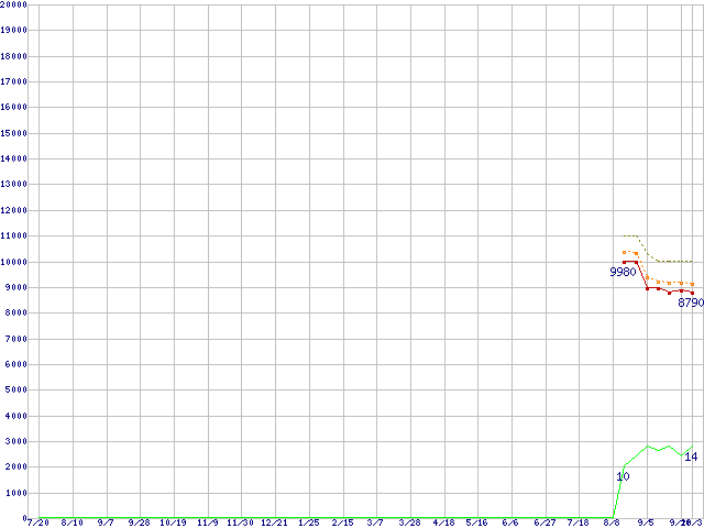 | Athlon X2 5400 Black Edition (2.8GHz,L2 512KB×2)の価格推移 | | | (2007年7月20日~2008年10月3日) |