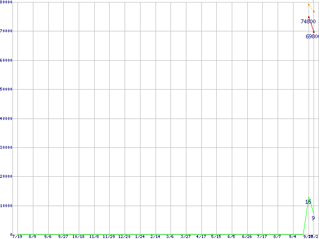 | SSDSA2MH080G1C5 (80GB,MLC)の価格推移 | | | (2007年7月19日~2008年10月2日) |