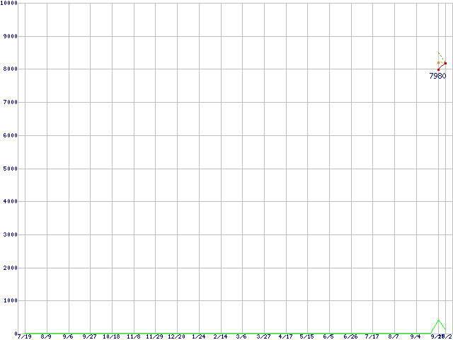 | WD5001AALS (500GB,32MB)の価格推移 | | | (2007年7月19日~2008年10月2日) |