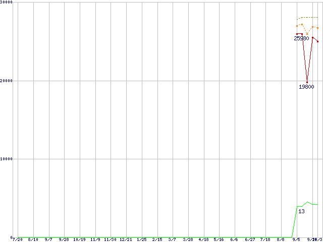| Core 2 Quad Q8200 (2.33GHz,L2 2MB×2)の価格推移 | | | (2007年7月20日~2008年10月3日) |