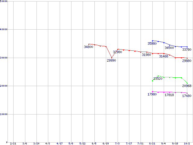 WD VelociRaptor (10000rpm,3Gb/s,16MB)の最安値推移