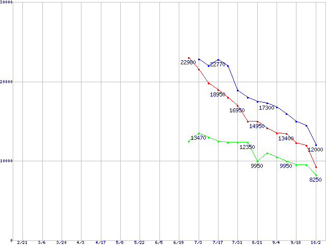 Deskstar P7K500 (7200rpm,3Gb/s)の最安値推移