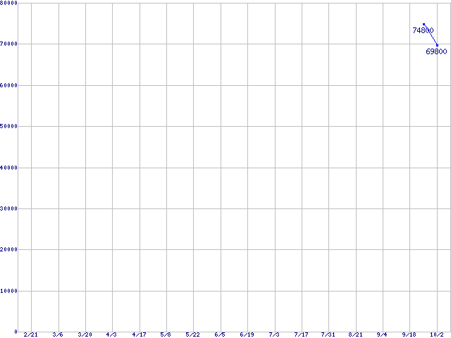 | X25-M Mainstream SATA Solid-State Drives (SSD,3Gb/s,2.5インチ)の最安値推移 | | | (2008年2月21日~2008年10月2日) |