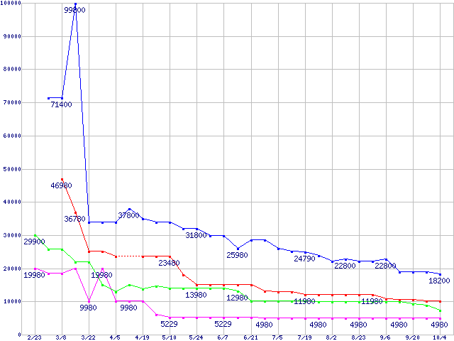 PC2-6400(DDR2-800) DDR2 SDRAM DIMMの最安値推移
