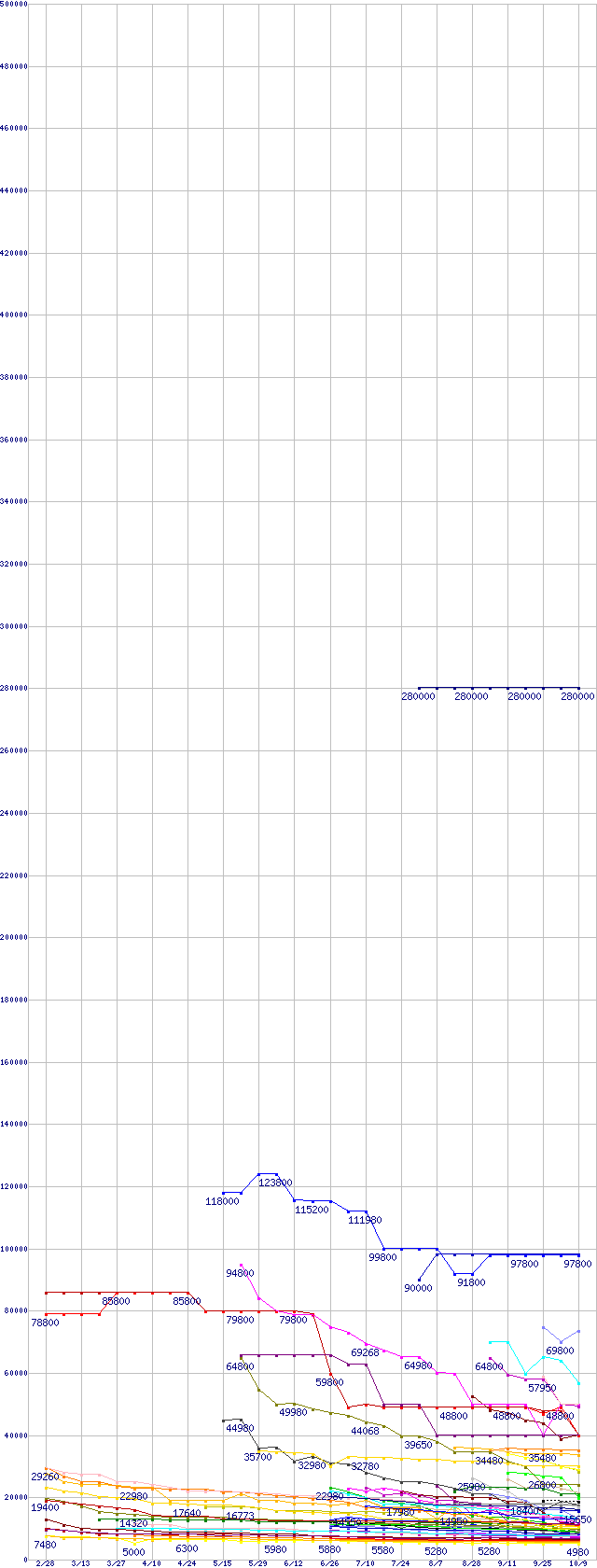 | HDD/SSD主要製品の最安値推移 | | | (2008年2月28日~2008年10月9日) |
