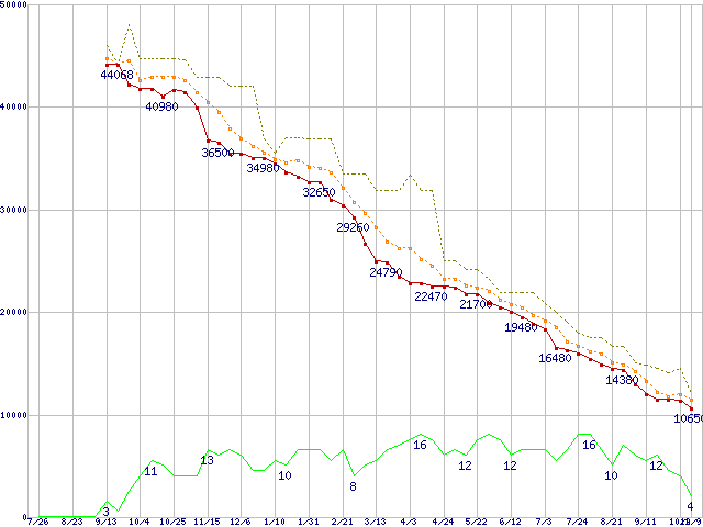 | ST31000340AS (1TB,32MB)の価格推移 | | | (2007年7月26日~2008年10月9日) |