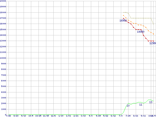 | WD7501AALS (750GB,32MB)の価格推移 | | | (2007年7月26日~2008年10月9日) |