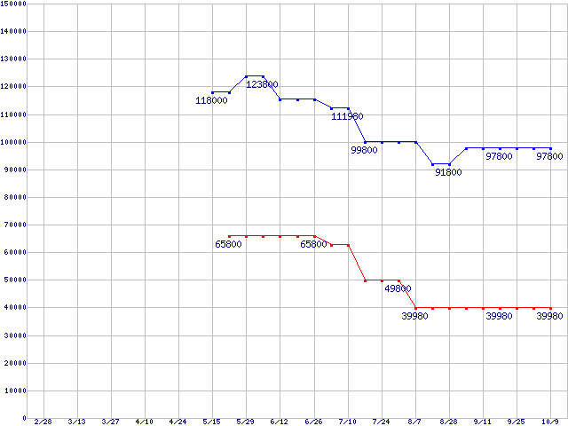 EcoGreen F1 DT (5400rpm,3Gb/s)の最安値推移