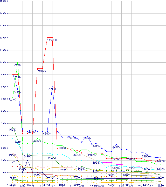 ※点線部は販売店が確認できなかった、または調査データがないことを示します