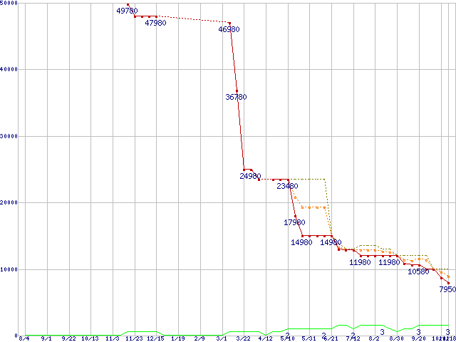 PC3-10600(DDR3-1333) DDR3 SDRAM DIMMの最安値推移
