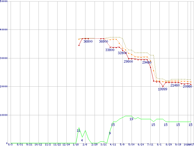 | Core 2 Duo E8500 (3.16GHz,L2 6MB)の価格推移 | | | (2007年8月3日~2008年10月17日) |