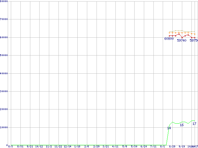 | Core 2 Quad Q9650 (3.00GHz,L2 6MB×2)の価格推移 | | | (2007年8月3日~2008年10月17日) |