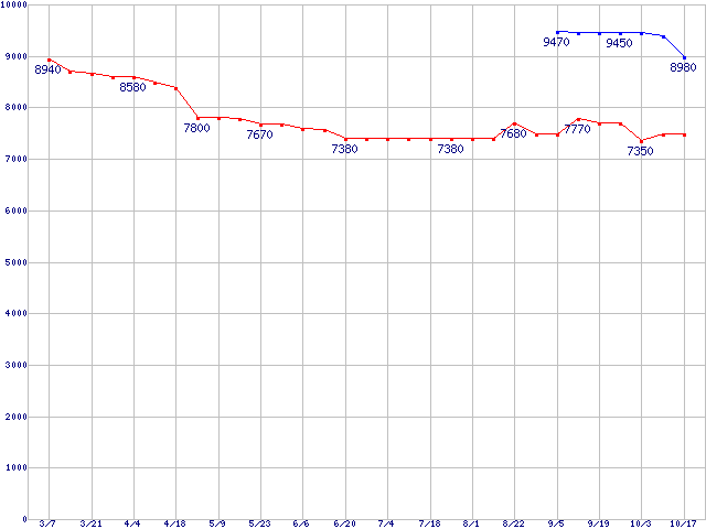 Socket AM2 (HyperTransport 3.0,Quad Core)の最安値推移