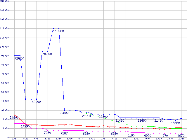 PC3-8500(DDR3-1066) DDR3 SDRAM DIMMの最安値推移
