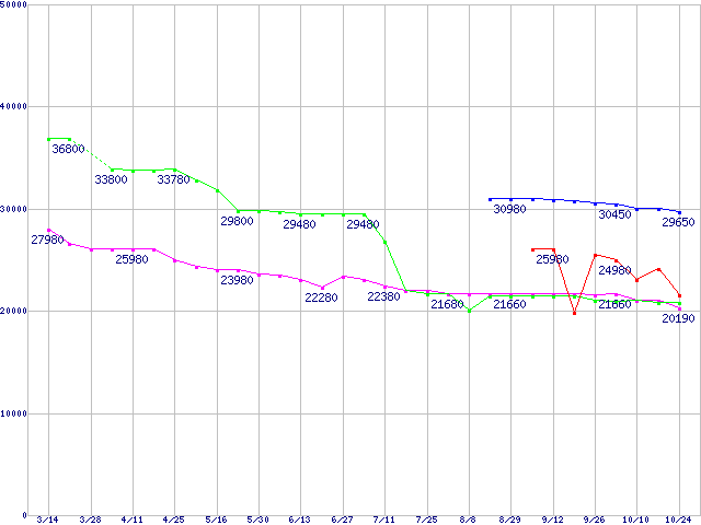 CPU主要製品(最安値2万円~3万円未満)の最安値推移