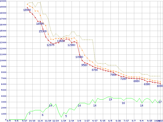 | ST3500320AS (500GB,32MB)の価格推移 | | | (2007年8月9日~2008年10月23日) |